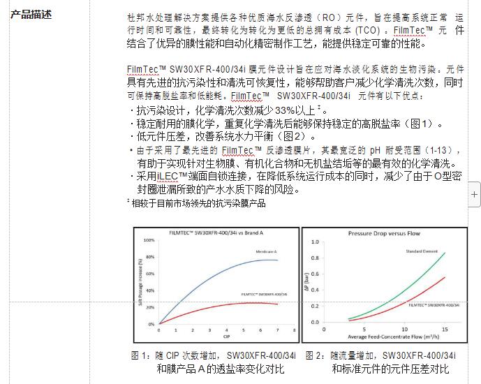 FilmTec™ SW30XFR-400/34i 膜元件