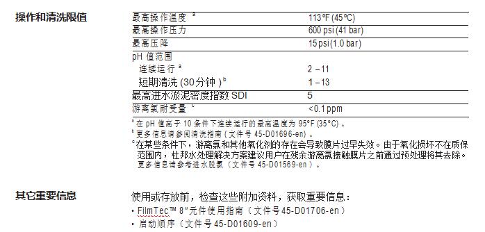 • 34mil 的進水流道,降低了膜元件被污堵的幾率,并明顯提 高了膜元件的清洗效果