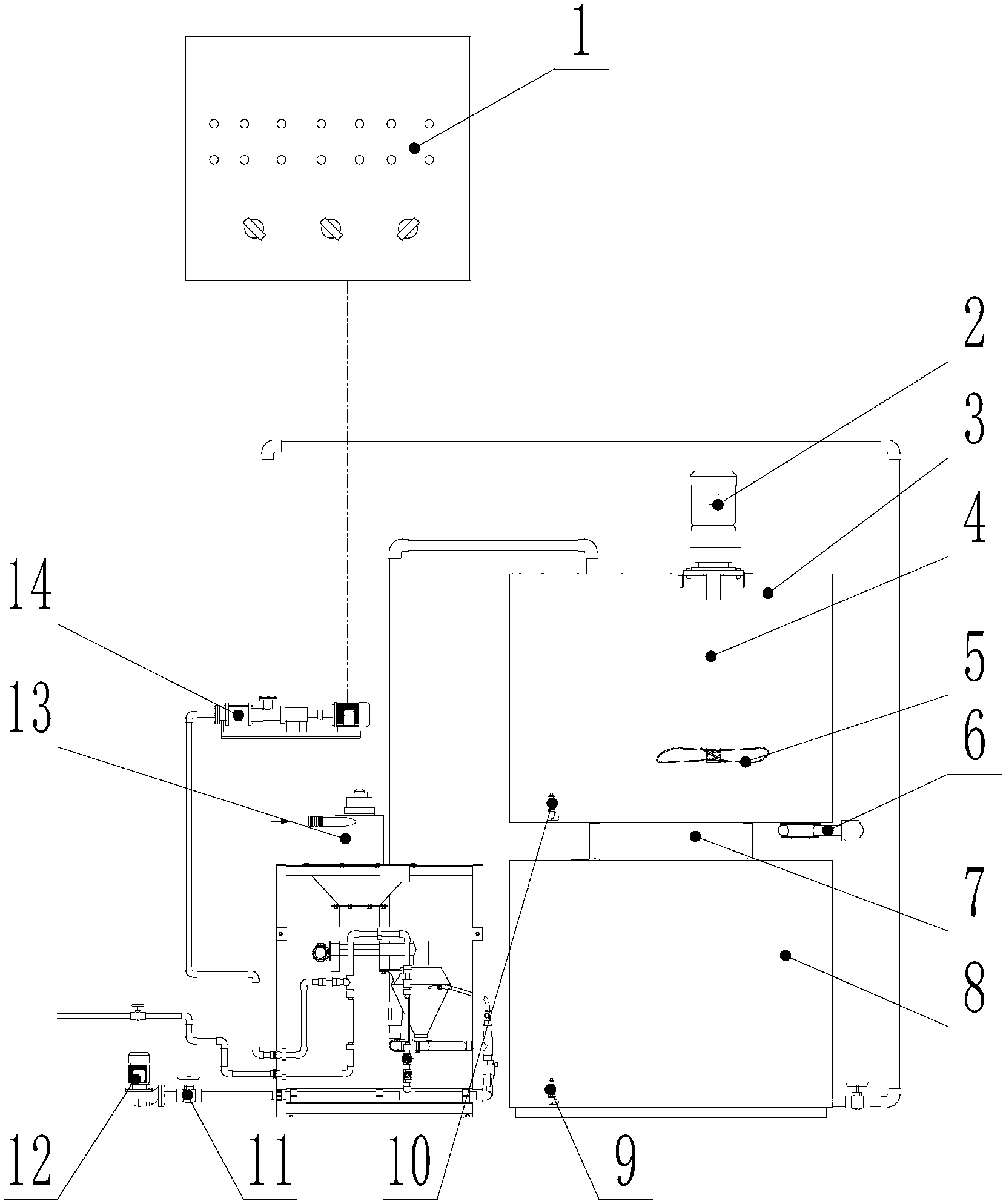 2.根據(jù)權(quán)利要求1所述的加藥系統(tǒng),其特征在于,所述攪拌機(jī)包括動力裝置、攪拌軸和攪拌葉;
