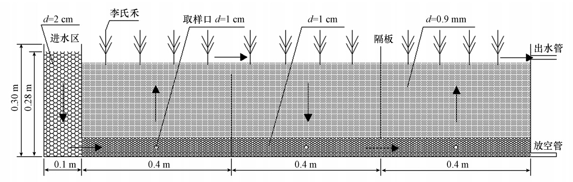 李氏禾(Leersia hex and ra Swartz)是中國境內首次發現的濕生鉻超富集植物,對Cr(Ⅵ)和Cr(Ⅲ)有很強的耐受和富集能力,并且具有生長迅速、根系發達、易于人工種植等優點.因此,該植物在水體Cr(Ⅵ)污染修復中極具應用前景.在前期實驗中,我們發現以李氏禾作為濕地植物構建的三段式波形潛流式人工濕地對Cr(Ⅵ)污染水體具有很強的凈化能力.然而,該濕地系統對水體Cr(Ⅵ)的去除機理仍不十分清楚.