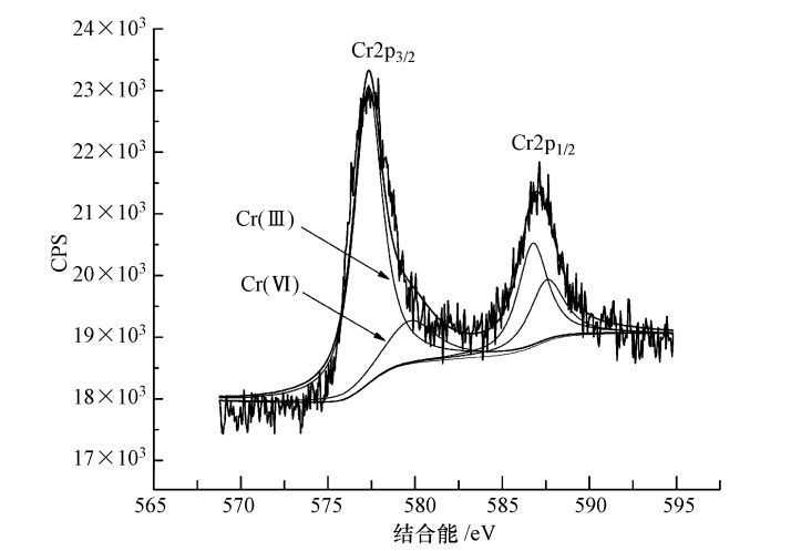 圖 5 李氏禾濕地基質吸附Cr(Ⅵ)后Cr2p高分辨率XPS譜圖