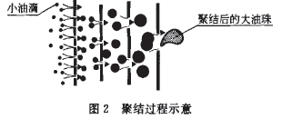 聚結(jié)器是整個(gè)工藝的核心,廢水中的分散油和乳化油流經(jīng)聚結(jié)材料的表面時(shí),油滴由小變大的過程如圖2所示。