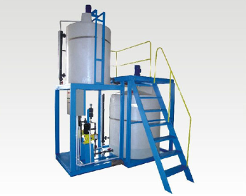 本裝置主要包括藥液溶配系統、計量投加系統、安全系統和控制系統等四部分。