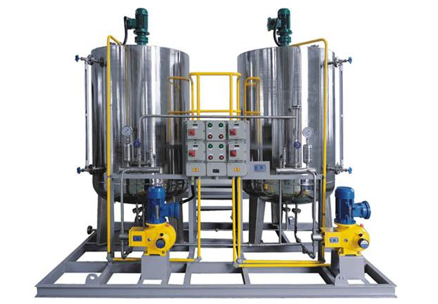 原料處理:采用一體化藥劑罐(容積通常為 200-1000L)存儲阻垢劑、緩蝕劑等功能性藥劑,罐體內置攪拌裝置(轉速 60-80r/min),確保固體藥劑充分溶解(溶解率≥98%),避免藥劑沉淀導致的計量誤差。