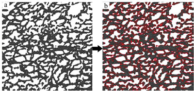 圖 3 原始膜孔結(jié)構(gòu)(a)與聚多巴胺(PDA)鍍膜后的膜孔結(jié)構(gòu)(b)的比較